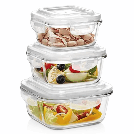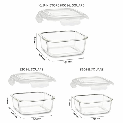 Borosil Klip N Store 3pc Set of 320ml, 520ml & 800ml (Square)