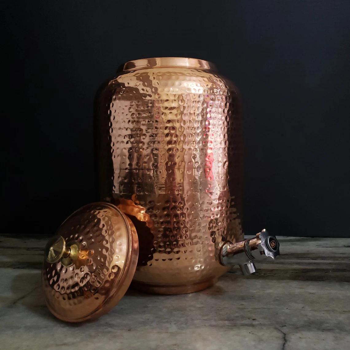Home Kitchenware 8L Pure Copper Water Dispenser: Hand-Hammered Elegance for Home, Studio, and Office